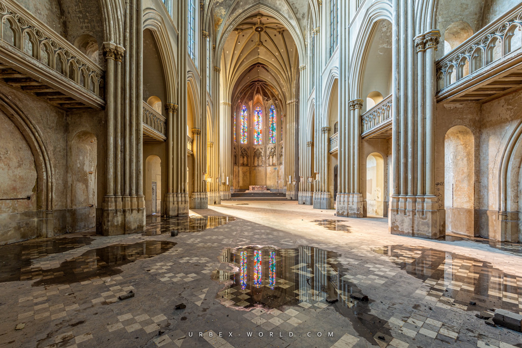 Sa localisation m’étonne : la région est plutôt pauvre en lieux abandonnés. Ni une ni deux, je prépare mon sac et pars dès l’aube, un dimanche matin, vers l’église. En arrivant, je constate que l’accès est devenu possible à cause de la destruction du bâtiment voisin. S’ensuit alors une séance photo de quatre heures, durant laquelle je me régale à chaque instant, émerveillé par la beauté des lieux.
