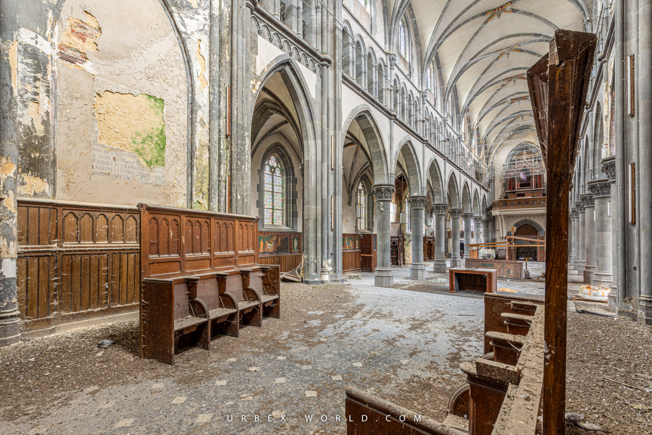 À peine à l’intérieur, une autre réalité s’impose : le sol est recouvert de fientes de pigeons, tandis que ces derniers volent librement sous les voûtes, accentuant l’impression de lieu abandonné.