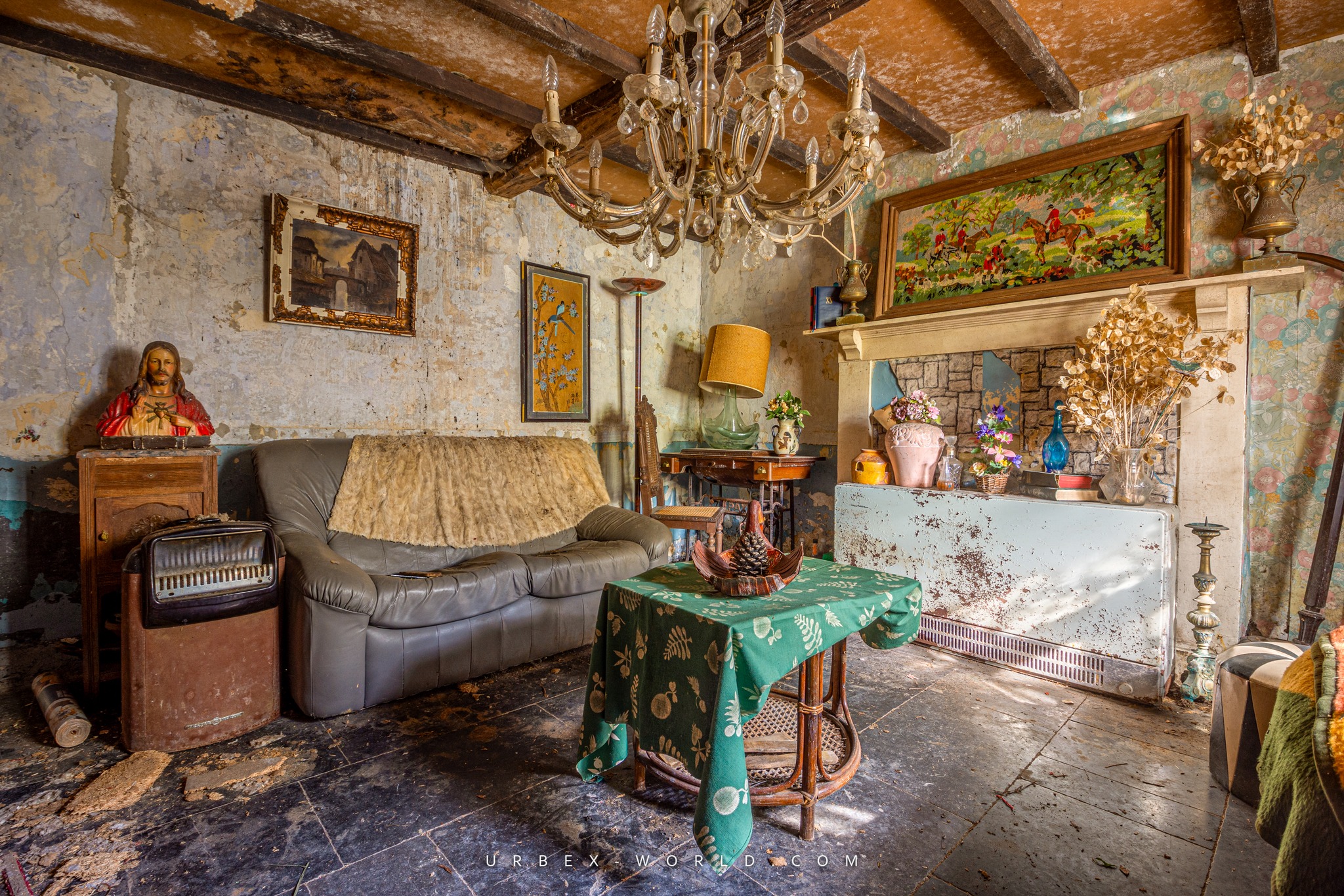 Une petite maison perdue en pleine campagne, où vivait autrefois Madame Denise. Aujourd’hui, elle est presque entièrement engloutie par la végétation, et une voiture abandonnée repose toujours devant l’entrée, comme figée dans le temps. À l’intérieur, seules deux pièces ont encore un certain charme ; le reste de la maison est envahi de meubles entassés et d’objets accumulés au fil des années. J’ai particulièrement été séduit par la cheminée, accompagnée de son vieux radiateur rouillé, autour desquels gravitent une multitude d’objets oubliés.